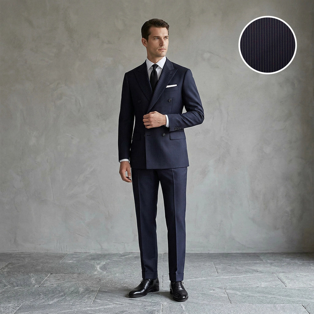 Our fabric range covers every occasion and climate, sourced from leading mills including Vitale Barberis Canonico (VBC), Guabello, Ermenegildo Zegna, Loro Piana, Angelico, Liberty, Maurizo, Vito, and MB Sartorial. During your consultation, we recommend the right cloth for your needs, from Italian worsted wools (Super 110’s to 160’s) and superfine merino (120’s, 130’s, 150’s, plus ultra-fine 15 micron options) to natural-stretch performance wool, tropical and four-season weaves, Lycra stretch suiting, and breathable luxury linen, so your bespoke suit matches your season, occasion, and comfort preferences.