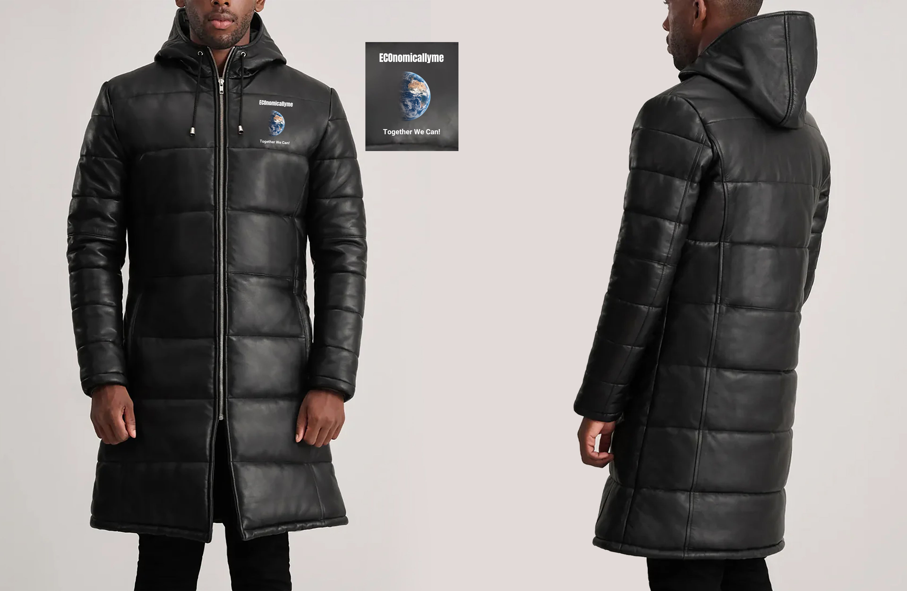 Floyd Black Hooded Leather Puffer Coat with the customizations you’ve outlined: