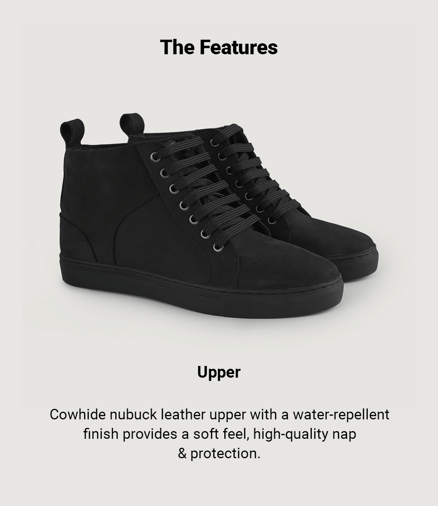 - Nubuck Cowhide Leather Upper (Durable Water Repellent Finish)